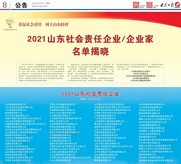 濰坊農(nóng)創(chuàng)集團(tuán)榮獲“2021山東社會(huì)責(zé)任企業(yè)”稱號(hào)